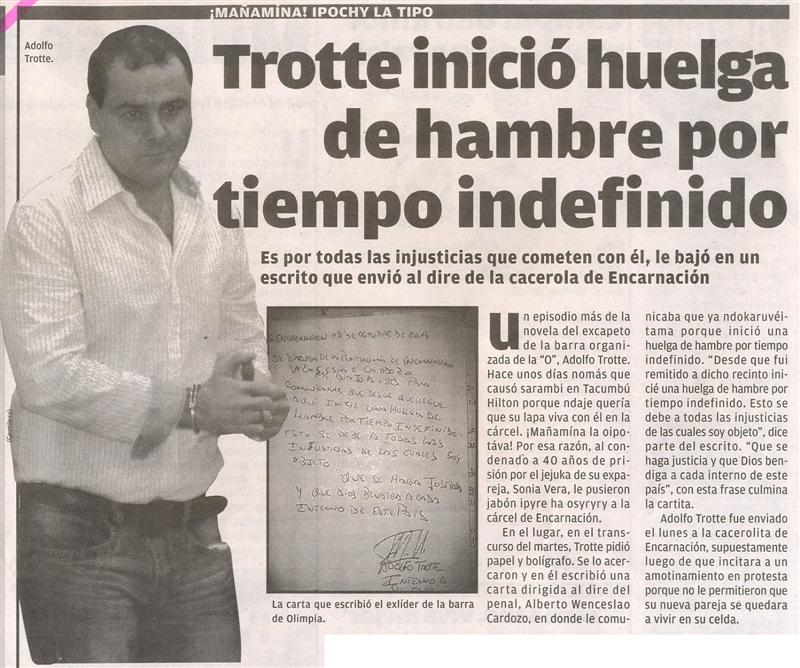 Trotte inició huelga de hambre por tiempo indefinido