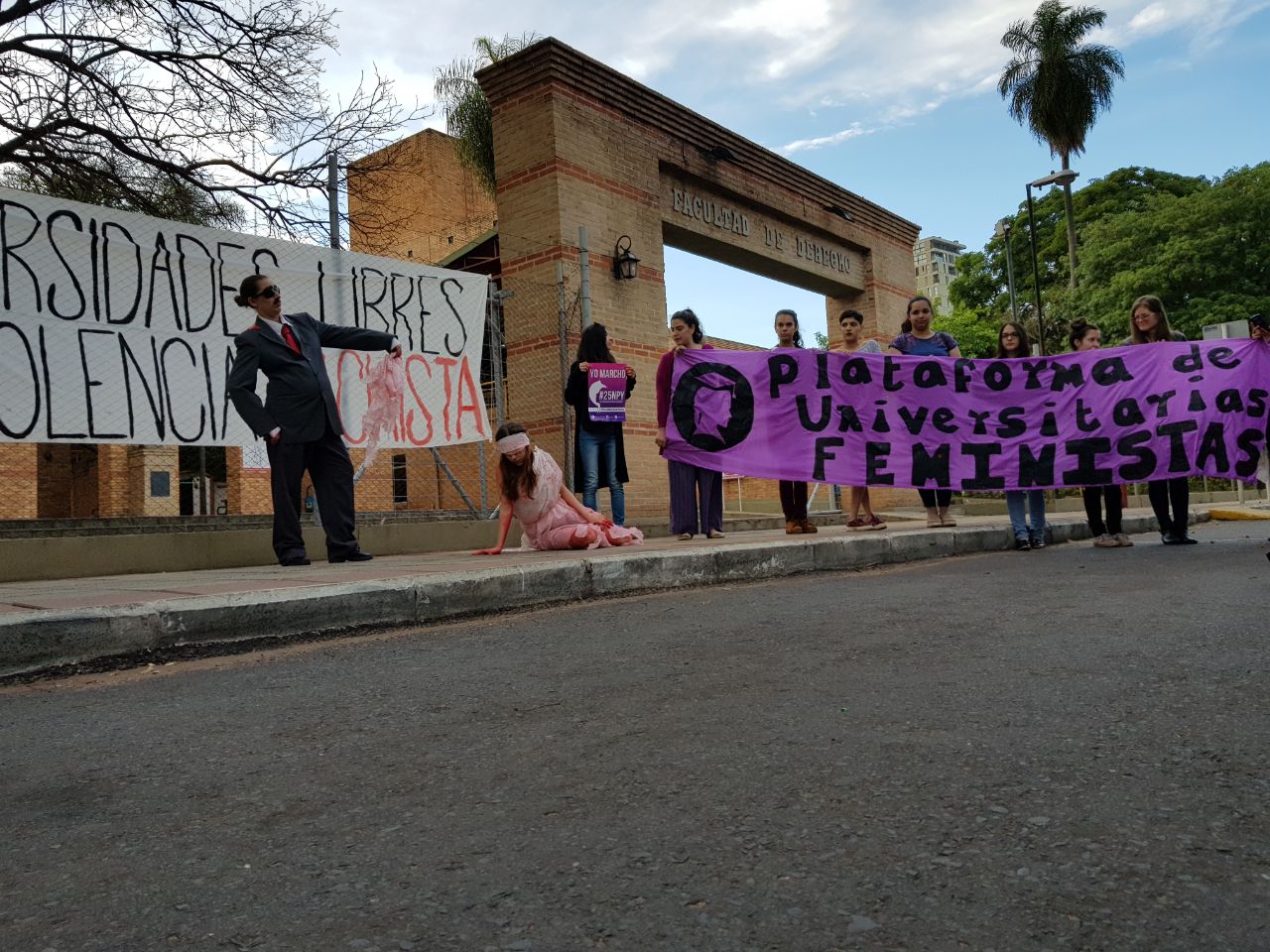 La Plataforma de Universitarias Feministas (PUF) realizó una acción este 22 de noviembre, ya como preparativo para la marcha del 25 de Nov
