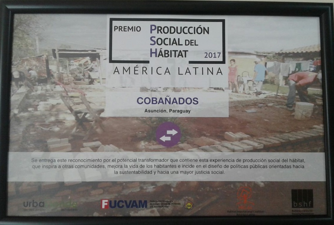 La organización Cobañados, que reúne a pobladores de los bañados de Asunción, recibió el Premio Producción Social del Hábital 2017