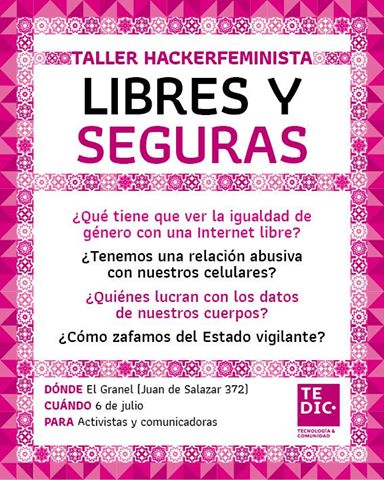 «Libres y seguras» es el nombre de un taller hackerfeminista que será llevado este jueves 06 de julio de 9 a 14 horas en El Granel, en Ju