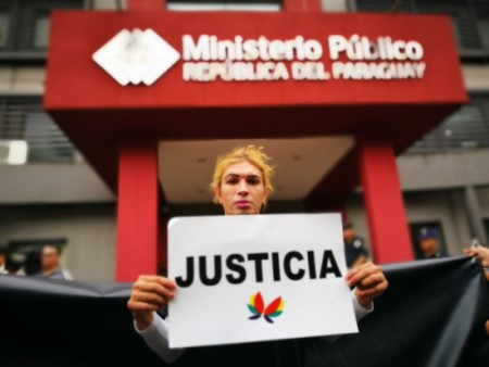 Integrantes de Panambi, organización por los derechos de las personas trans, Unidas en la Esperanza (UNES ) y Aireana-Grupo por los Derec