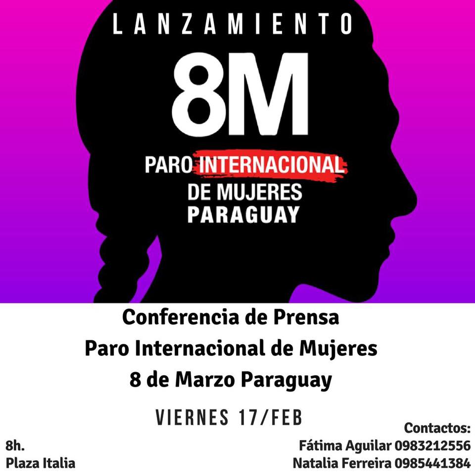 El viernes 17 de febrero, a las 8 horas, en la Plaza Italia de la ciudad de Asunción, mujeres organizadas realizaremos una conferencia de p