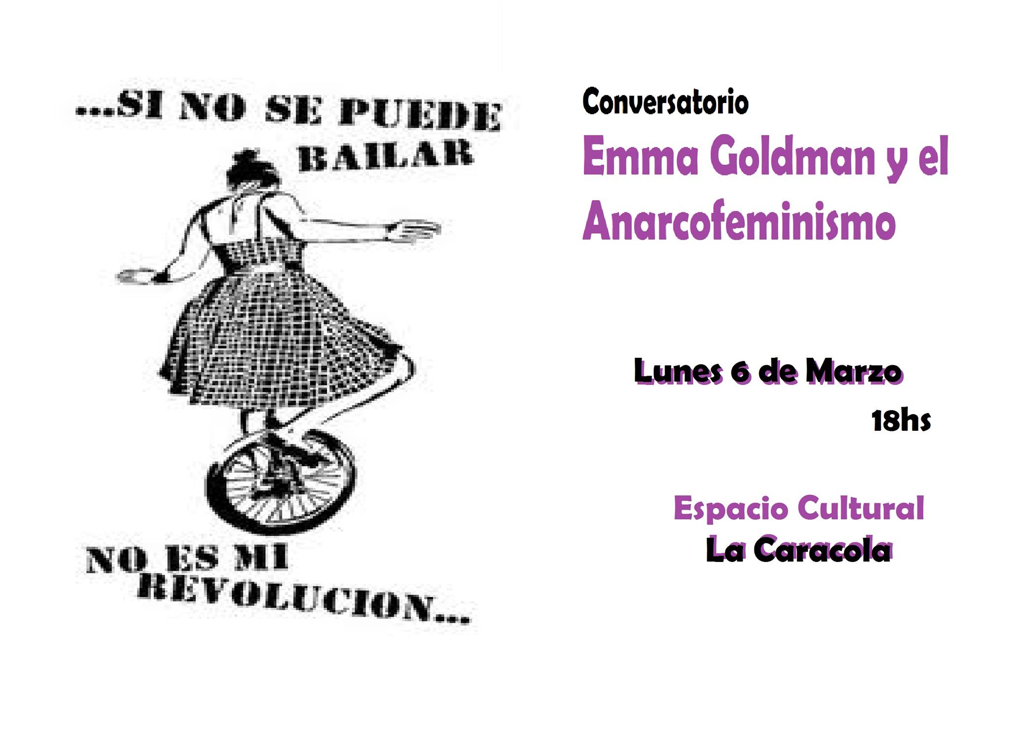 “Si no puedo bailar, tu revolución no me interesa” es una frase de Emma Goldman con la que se invita a un conversatorio sobre Anarcof