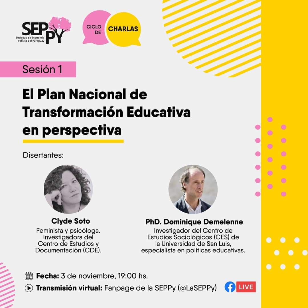 Este jueves 3 de noviembre, a las 19 horas se llevará a cabo la charla «El Plan Nacional de Transformación Educativa en perspectiva» org
