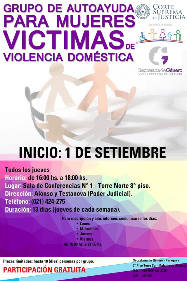 La Secretaría de Género de la Corte Suprema de Justicia invita a un espacio que se llama “Grupo de Autoayuda para mujeres adultas vícti