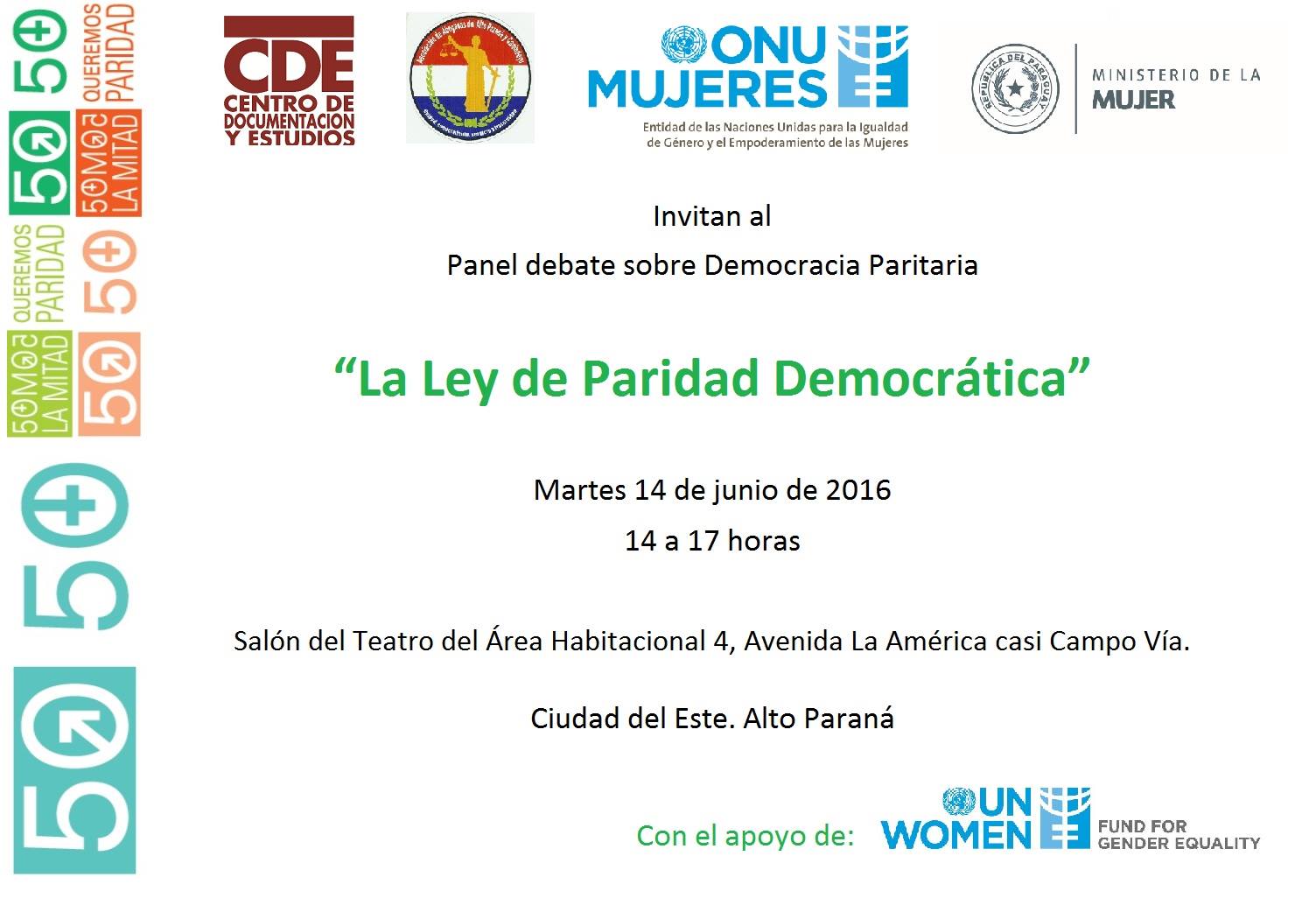 Este martes 14 de junio, de 14 a 17 horas, se llevará a cabo el panel debate “Sobre Democracita Paritaria. La Ley de Paridad Democrática