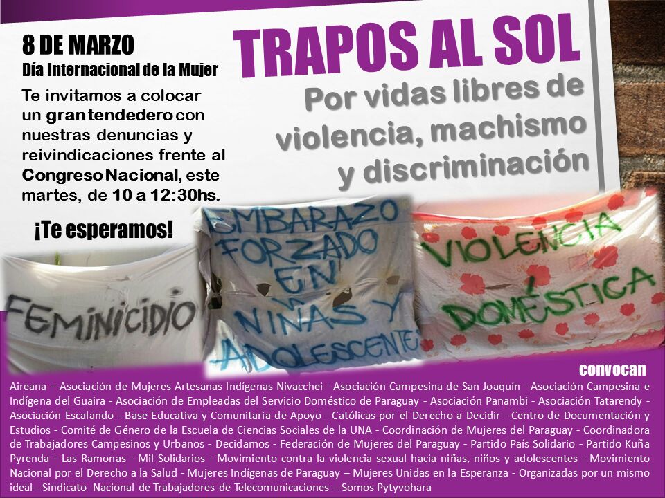 Este martes 8 de marzo, Día Internacional de la Mujer, más de 20 organizaciones sociales de diversos sectores de mujeres del Paraguay unen