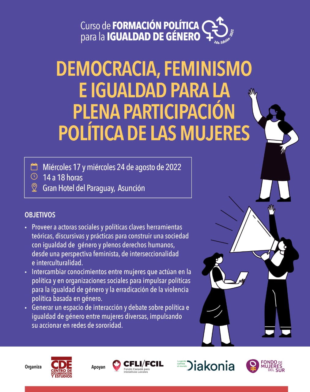 Este miércoles 17 de agosto inicia el curso de formación política para la igualdad de género “Democracia, feminismo e igualdad para la