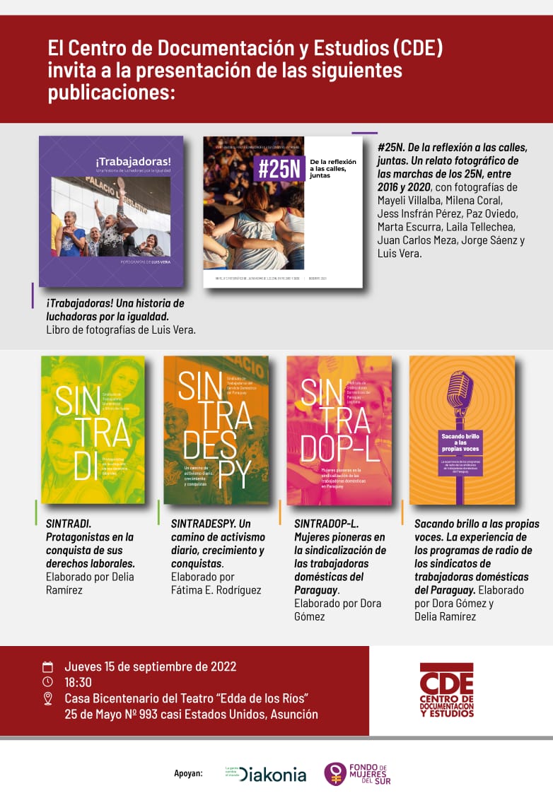 CDE PRESENTA SEIS LIBROS SOBRE LA LUCHA DE LAS MUJERES TRABAJADORAS EN EL PARAGUAY El Centro de Documentación y Estudios (CDE) pu