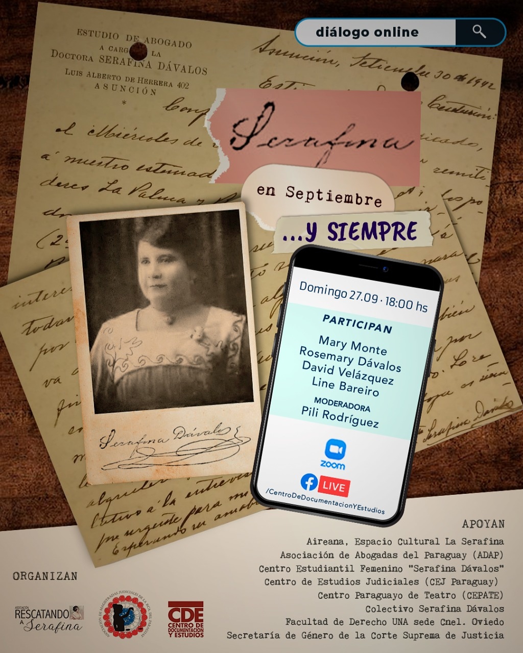 El domingo 27 de setiembre de 2020, a las 18 horas, se llevará a cabo diálogo online «Serafina en septiembre…Y siempre» en conme